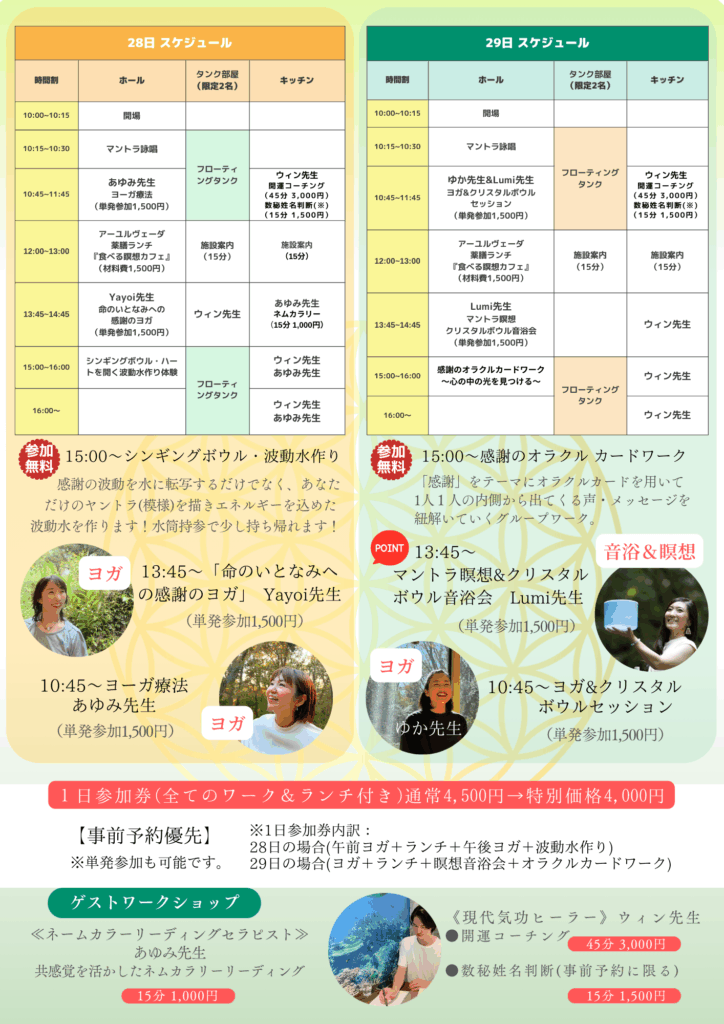 感謝の気持ちを込めて、心と身体が喜ぶ特別な2日間のイベントをご用意しました。