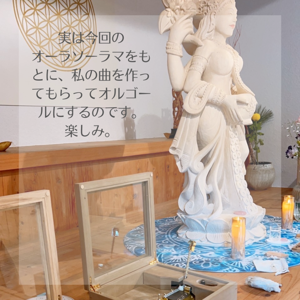 実はこのオーラソーマの結果を元にチカさん(音楽家)が私の曲を作って下さり、この写真手前に映る木製オルゴールで奏でられる予定です。